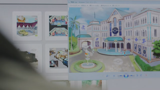 | No close up, é possível ver o que parecem ser dois player characters. A treinadora tem o estilo de Kalos, enquanto o treinador se parece a Red.