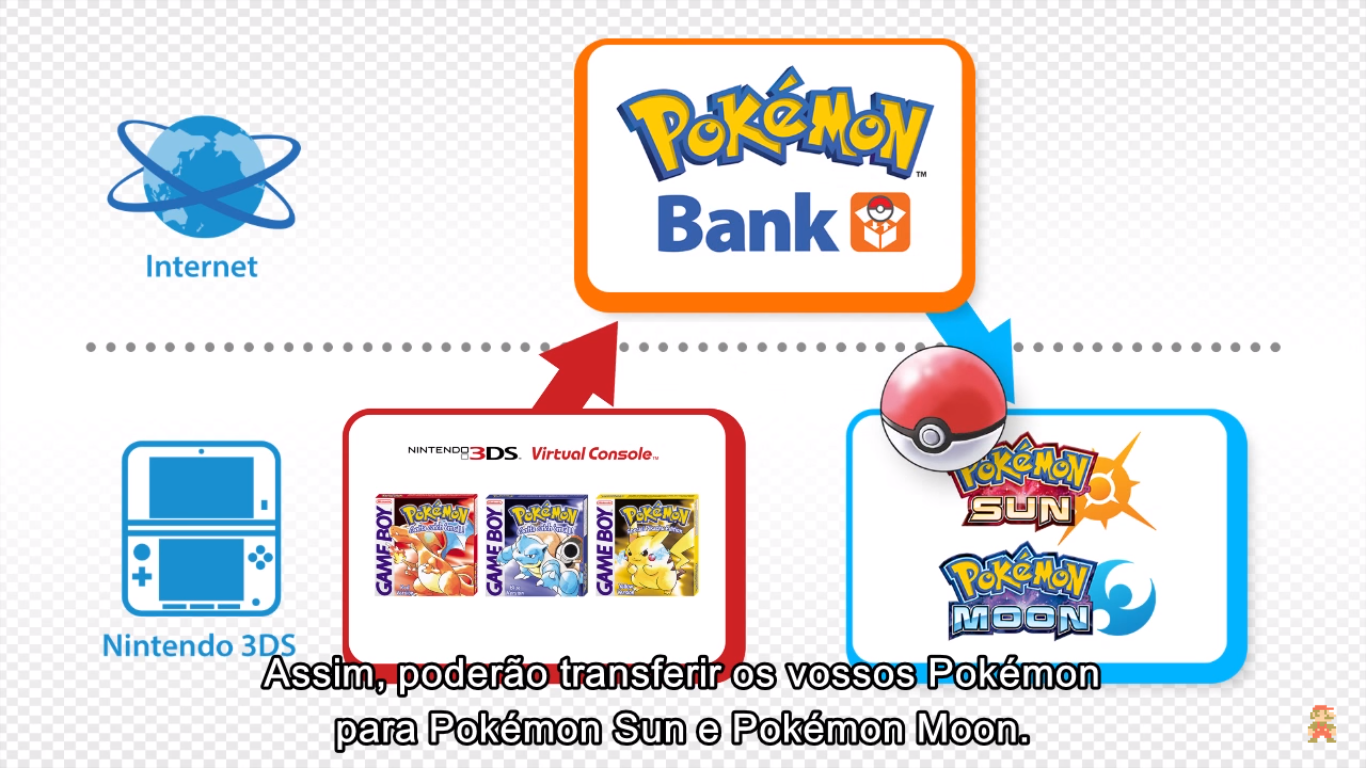 Foi também anunaciado que Pokémon Red, Blue e Yellow da virtual console vão ser compatíveis com o Pokémon Bank! Vão poder transferir os Pokémon até aos jogos mais recentes, que também são compatíveis com o Pokémon Bank.