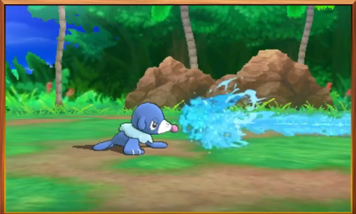 Por último, para os adeptos da água, a terceira opção é o acrobático Pokémon Sea Lion, Popplio. O Popplio consegue fazer balões de água proveniente do seu nariz e utiliza-os para criar vários ataques e estratégias diferentes nas batalhas. Este Pokémon desloca-se melhor na água do que em terra e consegue nadar a uma velocidade superior a 40 km/h. Em terra, utiliza a elasticidade dos seus balões para executar manobras e saltos acrobáticos.