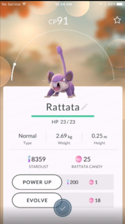 - O processo de evolução será diferente em GO quando comparado com os jogos da série principal, pois terá como base a utilização de candies, ou seja, doces. O jogador recebe candies sempre que captura um Pokémon e poderá usá-los quer para dar power-ups a um Pokémon como para o evoluir. Cada Pokémon que o jogador captura oferece um candy dedicado. A título de exemplo, ao apanhar um Squirtle o jogador recebe um Squirtle Candy. Se apanhar 25 Squirtles o jogador acumula 25 Squirtle Candies, podendo assim evoluir Squirtle para Wartortle. O processo é aplicável a todos os Pokémon que tenham estágios evolutivos;