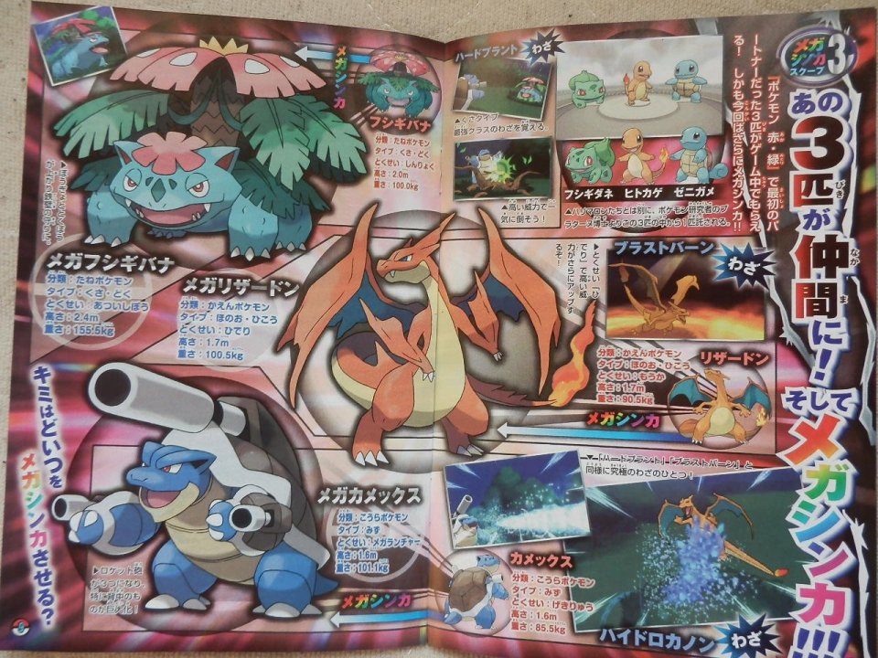 Graças à generosidade do Professor Sycamore, iremos receber um dos Pokémon Iniciais de Kanto! Na imagem acima vemo-los nas suas formas Mega!