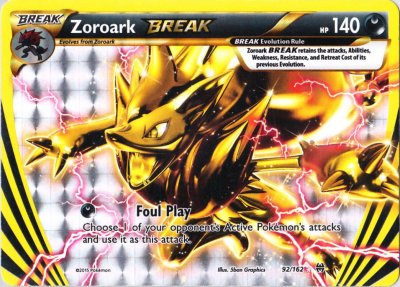 Regra para a Break 2015/08: Este Pokémon tem os Ataques, Habilidades, Fraquezas, Resistências e Custo para Recuar do Zoroark de quem ele evoluiu.