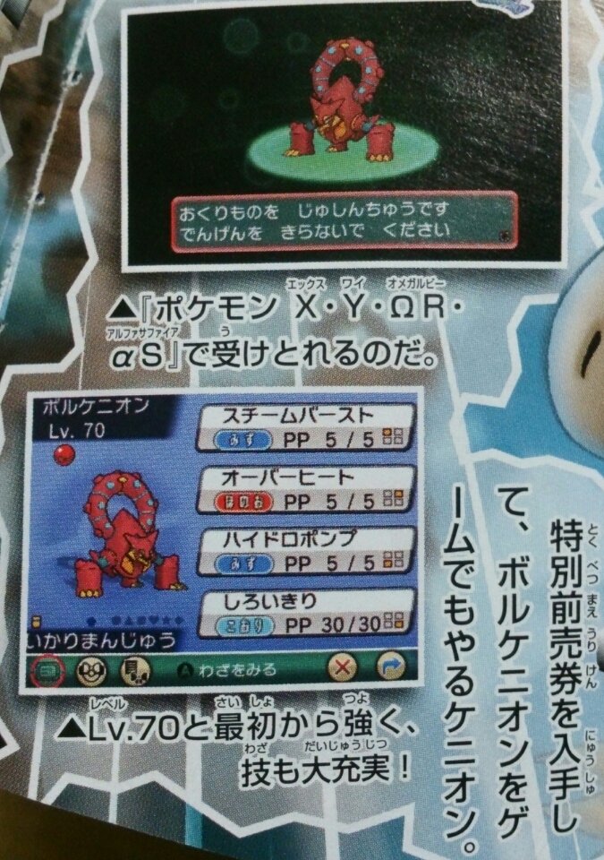 A revista CoroCoro do próximo mês mostra a distribuição do Volcanion.