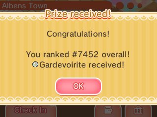 Se foste um dos jogadores que se qualificou no stage de Mega Gardevoir a semana passada, receberás hoje a Gardevoirite. Os melhores jogadores receberam também Attack Power, Level Up ou Raise Max Level. Se participaste mas ficaste abaixo da meta recebes ainda assim um Disruption Delay. Para receber os items basta fazer Check In até dia 28 de Junho.