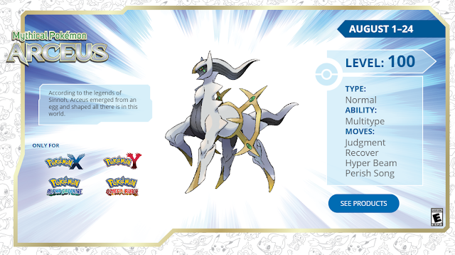 Na distribuição de Julho salientámos o carácter ‘divinal’ da distribuição agendada para Agosto e não é caso para menos quando se trata do Alpha Pokémon, Arceus, criador do universo Pokémon – ou será… universos? – segundo as lendas da região de Sinnoh.