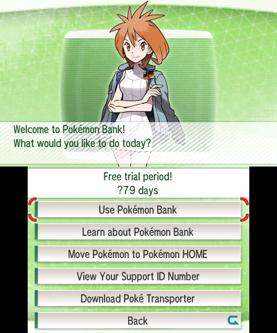 O menu principal do Pokémon Bank vai passar a ser o seguinte: